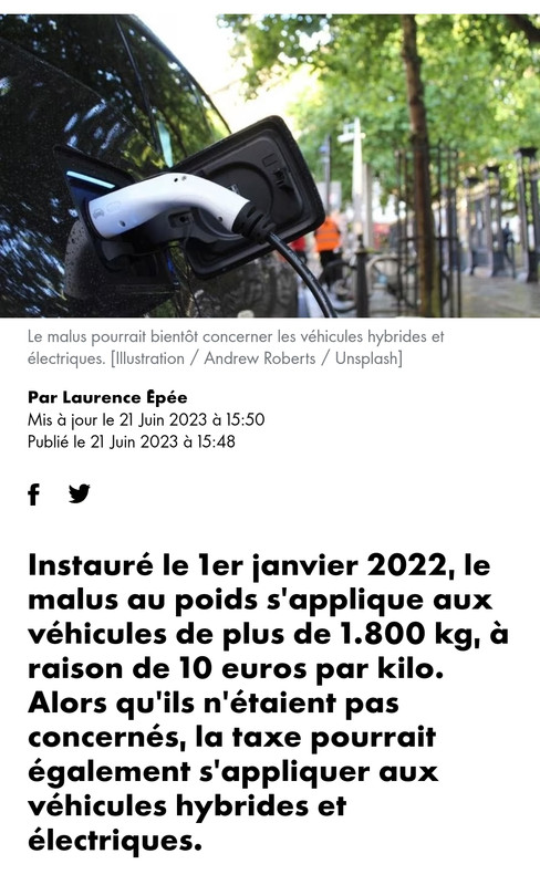 Attends de voir la hausse du coût de l'électricité et surtout la mise en place de la taxe de recharge que l'État va mettre en place pour compenser le manque à gagner sur les carburants fossiles...tassin.eloy a écrit : C’est la consommation moyenne qui m’a fait halluciner… 11 litres/100 sur autoroute (140 mais des pointes à 220) + route de montagne![]()